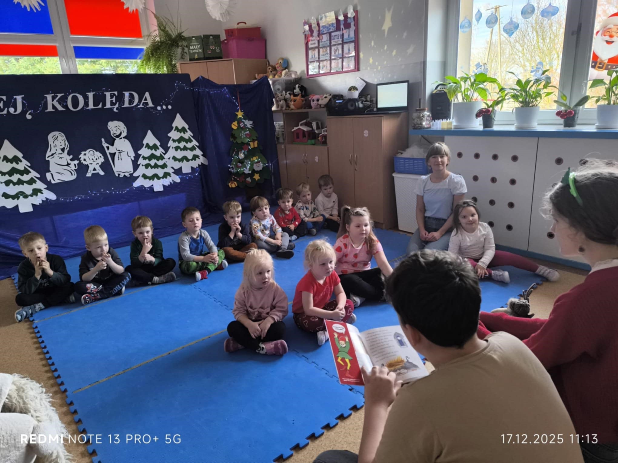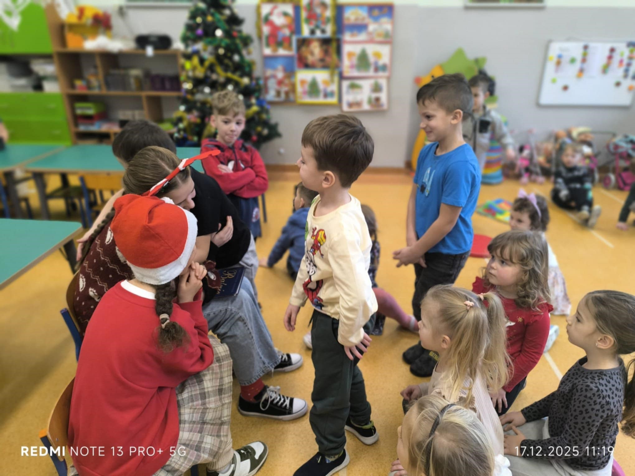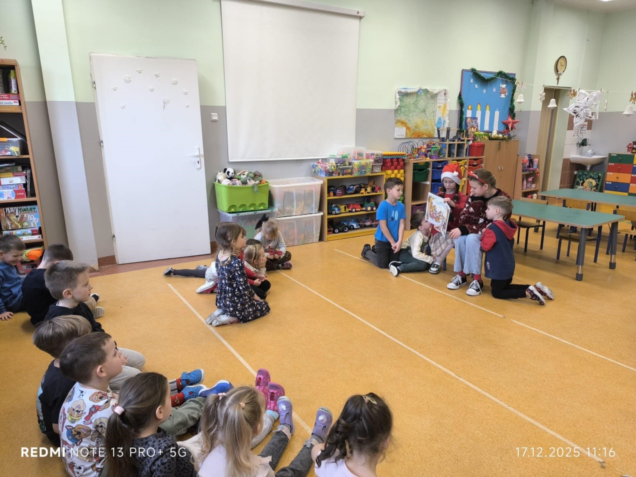 Młodsi słuchacze z ogromnym zainteresowaniem śledzili historie czytane przez starszych kolegów i koleżanki. Wspólne czytanie stworzyło piękną, świąteczną atmosferę, sprzyjającą budowaniu więzi między uczniami różnych etapów edukacyjnych. Spotkanie było nie tylko okazją do rozwijania czytelnictwa, ale także do kształtowania postaw empatii, zaangażowania i współpracy. Dzieci z przedszkola nagrodziły starszych uczniów szerokimi uśmiechami, a całość zakończyła się krótką rozmową o ulubionych świątecznych tradycjach. To była wartościowa i radosna inicjatywa, która na długo pozostanie w pamięci zarówno przedszkolaków, jak i uczniów SU.