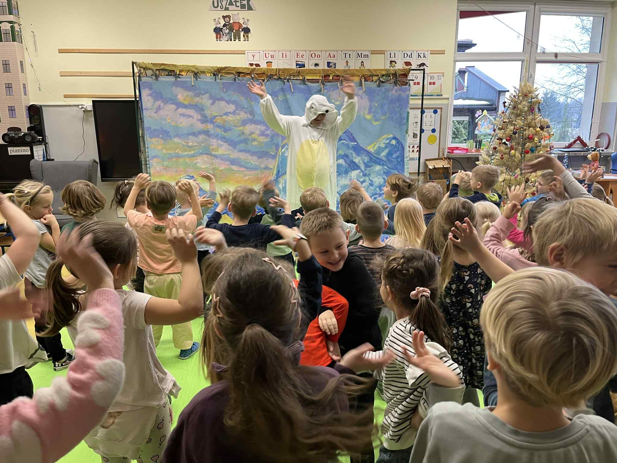 W naszym przedszkolu odbyło się niezwykłe przedstawienie pt. „Doktor Dolittle i jego zwierzęta”. Mali widzowie z ogromnym zainteresowaniem śledzili przygody sympatycznego doktora, który potrafi rozmawiać ze zwierzętami i zawsze spieszy im z pomocą. Dzieci podczas przedstawienia zobaczył barwne kostiumy i ciekawą scenografię, która przeniosła wszystkich w bajkowy świat; wesołe dialogi i zabawne sytuacje, które wywoływały salwy śmiechu; ważne przesłanie o przyjaźni, trosce o innych i miłości do zwierząt. Przedstawienie nie tylko dostarczyło dzieciom wielu radosnych chwil, ale także nauczyło je, że warto być dobrym, pomocnym i otwartym na potrzeby innych – zarówno ludzi, jak i zwierząt.
