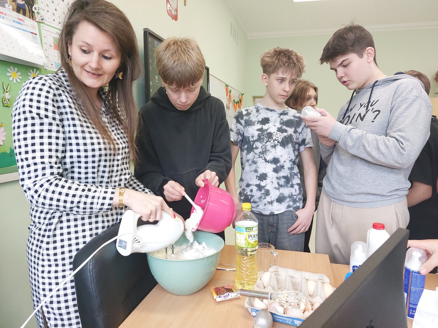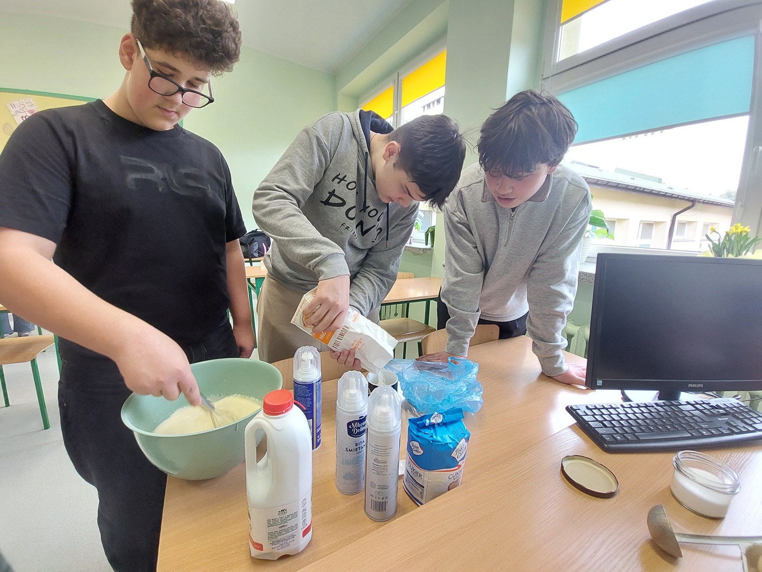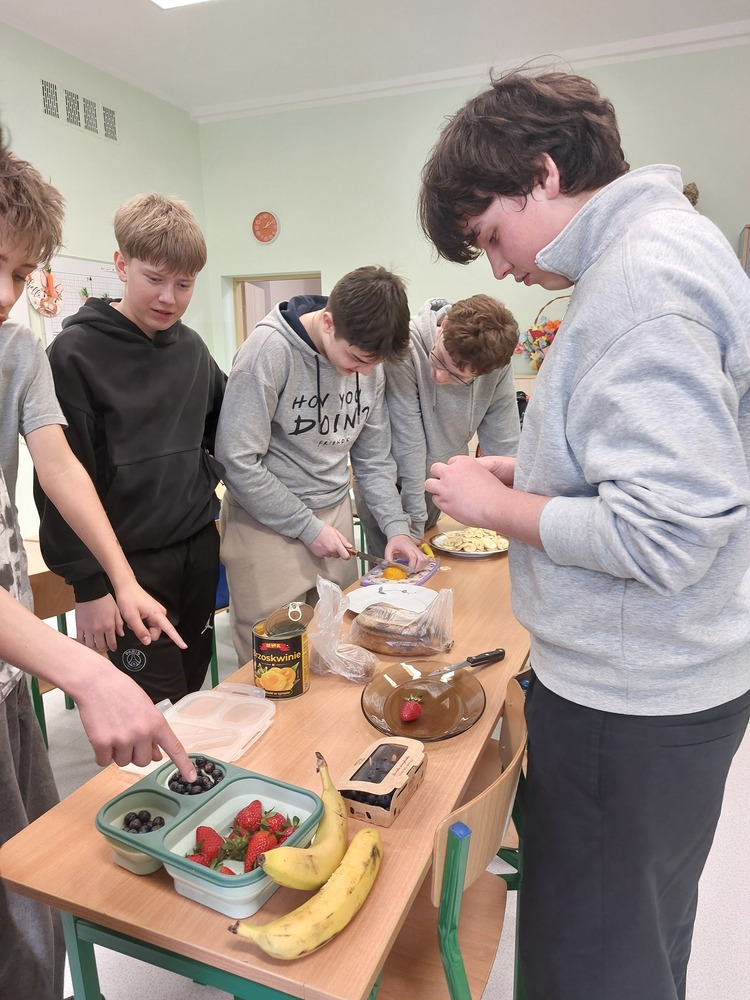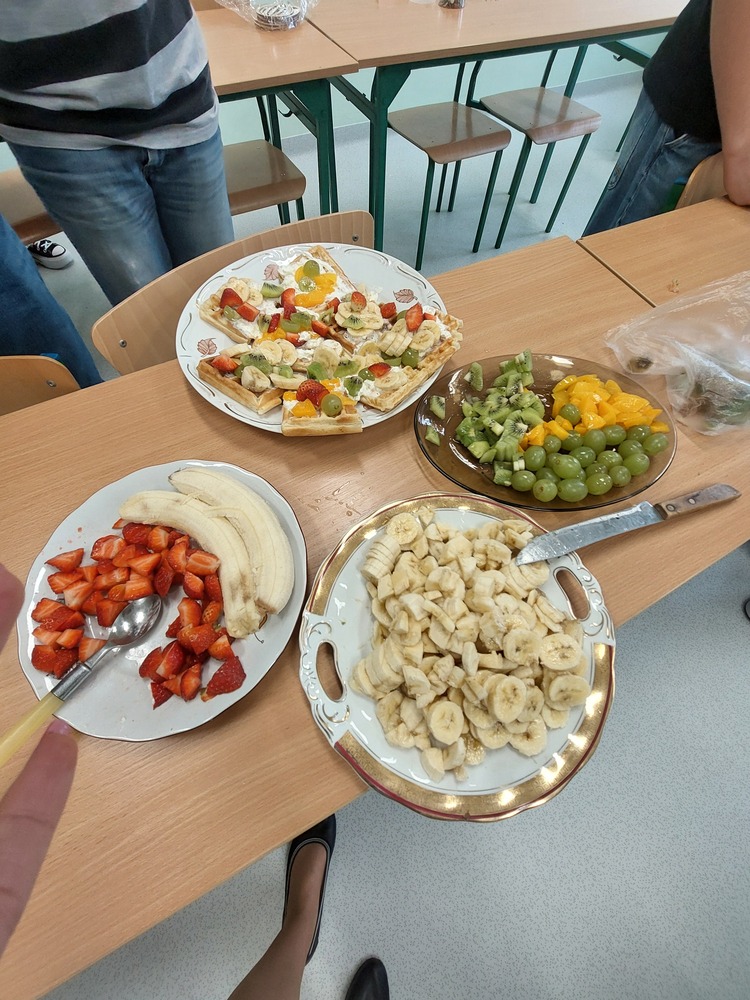 Dzień Gofra w naszej klasie był bardzo udanym i smacznym wydarzeniem. Wspólnie przygotowaliśmy gofry, a każdy mógł udekorować je według własnego pomysłu - z bitą śmietaną i owocami. Chłopcy zajęli się przygotowaniem ciasta i obraniem owoców, natomiast dziewczyny piekły i dekorowały. Podczas zajęć panowała miła atmosfera, a zapach świeżych gofrów unosił się w całej klasie. Była to świetna okazja do integracji i chętnie powtórzylibyśmy taki dzień jeszcze raz.