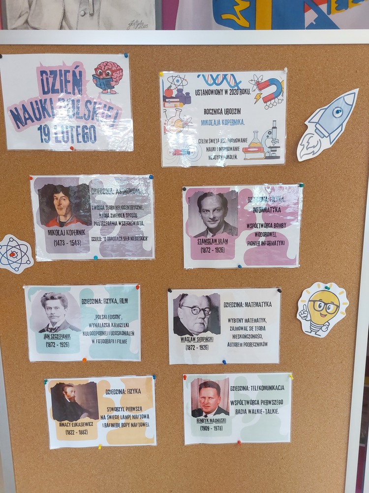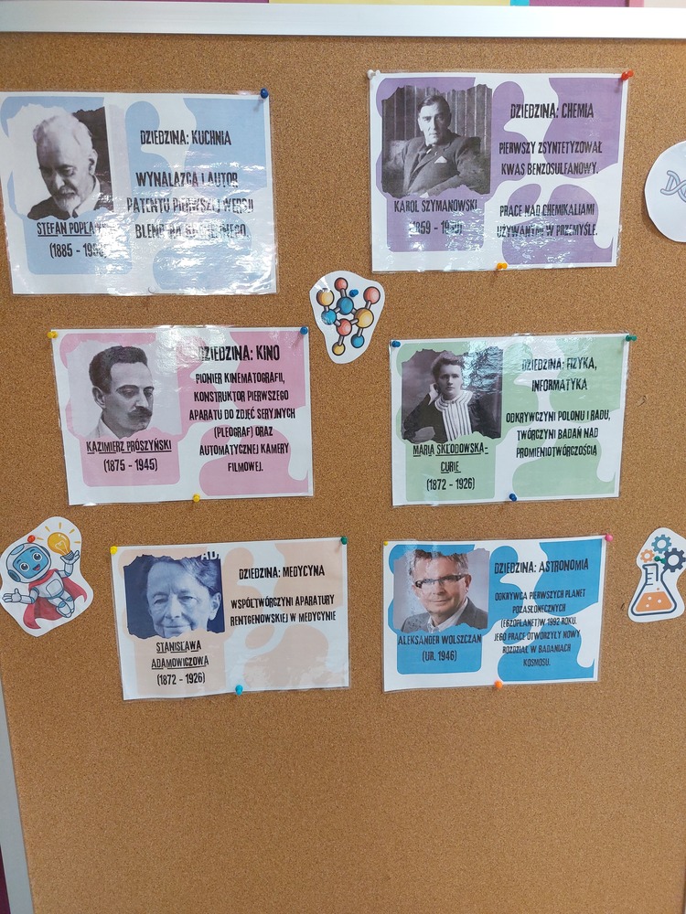 Z tej okazji uczniowie przygotowali plakaty przedstawiające znanych polskich naukowców, wynalazców i badaczy. Na pracach pojawili się m.in. Maria Skłodowska-Curie, Ignacy Łukasiewicz Stanisław Ulam oraz wielu innych wybitnych przedstawicieli polskiej nauki.