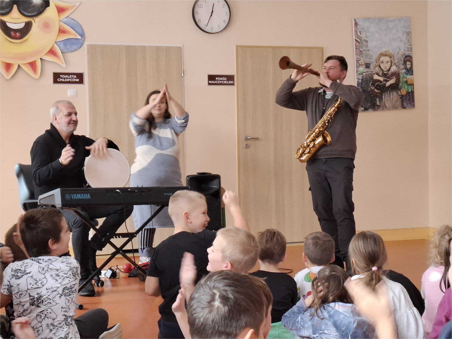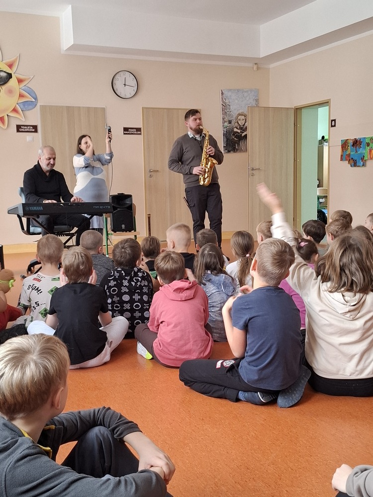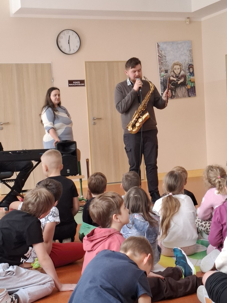W naszej szkole odbył się kolejny pełen energii koncert muzyczny dla klas 1–3 pt. "Muzyczna układanka". Artyści przygotowali program, w którym zaprezentowali różnorodne instrumenty oraz zachęcali dzieci do aktywnego udziału. Uczniowie mogli usłyszeć brzmienie np. saksofonu czy fletu macedońskiego. Muzycy grali rytmiczne, wpadające w ucho utwory, a dzieci z entuzjazmem klaskały i naśladowały ruchy prowadzących. Dzięki temu, że artyści opowiadali też o swoich instrumentach i prezentowali ich różne brzmienia, uczniowie mogli nie tylko dobrze się bawić, ale również dowiedzieć się czegoś nowego o muzyce.