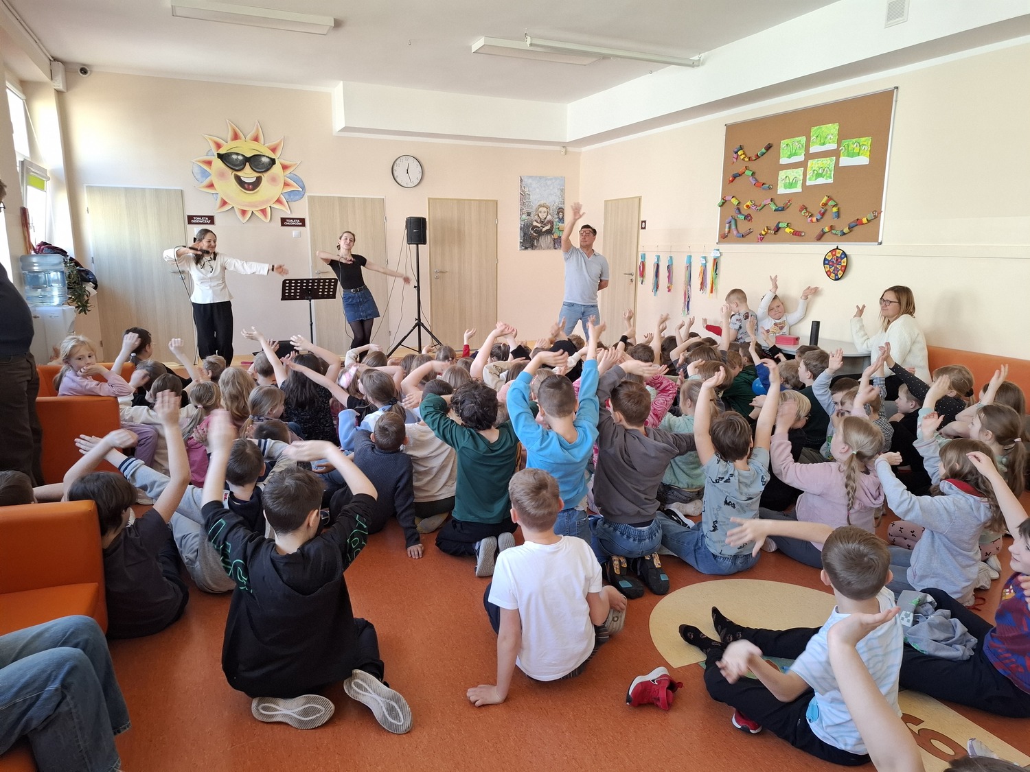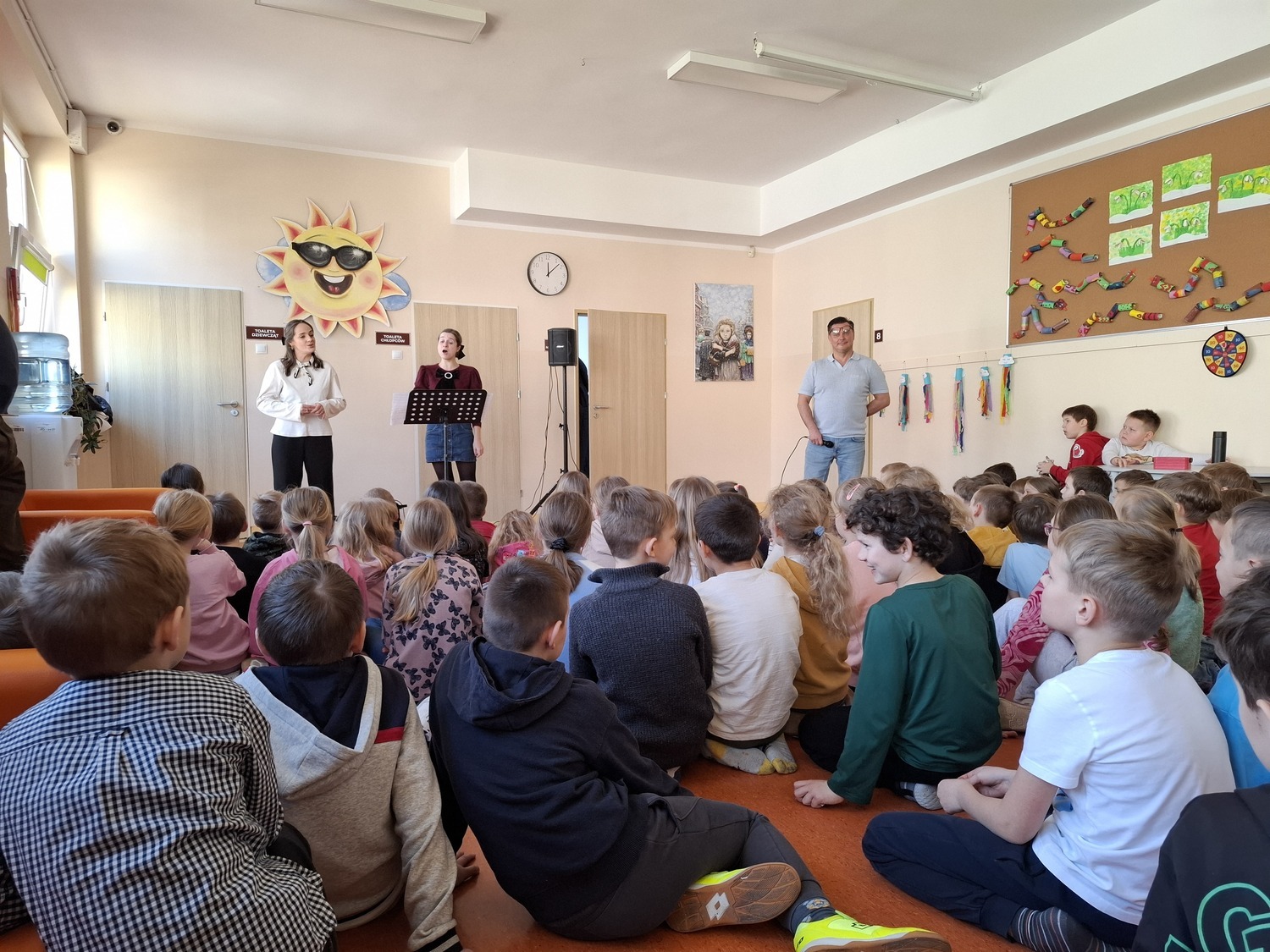 9 marca w naszej szkole odbył się wyjątkowy koncert muzyczny przeznaczony dla uczniów klas 1–3. Było to niezwykłe spotkanie z muzyką, podczas którego młodzi słuchacze mieli okazję poznać różne style i gatunki muzyczne. Zaproszeni muzycy zaprezentowali piękne utwory operowe, operetkowe oraz współczesne. Artyści zachwycili wszystkich nie tylko swoimi wspaniałymi głosami, ale także energią i radością, którą dzielili się z dziećmi. Podczas koncertu uczniowie mogli usłyszeć, jak brzmi prawdziwy śpiew operowy oraz dowiedzieć się, czym różni się opera od operetki. Występ był nie tylko muzyczną ucztą, ale także ciekawą lekcją o świecie muzyki. Artyści opowiadali o prezentowanych utworach, zachęcali do wspólnego rytmizowania i zabawy muzycznej. Dzięki temu uczniowie aktywnie uczestniczyli w wydarzeniu i z dużym zainteresowaniem słuchali kolejnych utworów. Koncert spotkał się z ogromnym entuzjazmem wszystkich obecnych, którzy nagrodzili artystów gromkimi brawami.