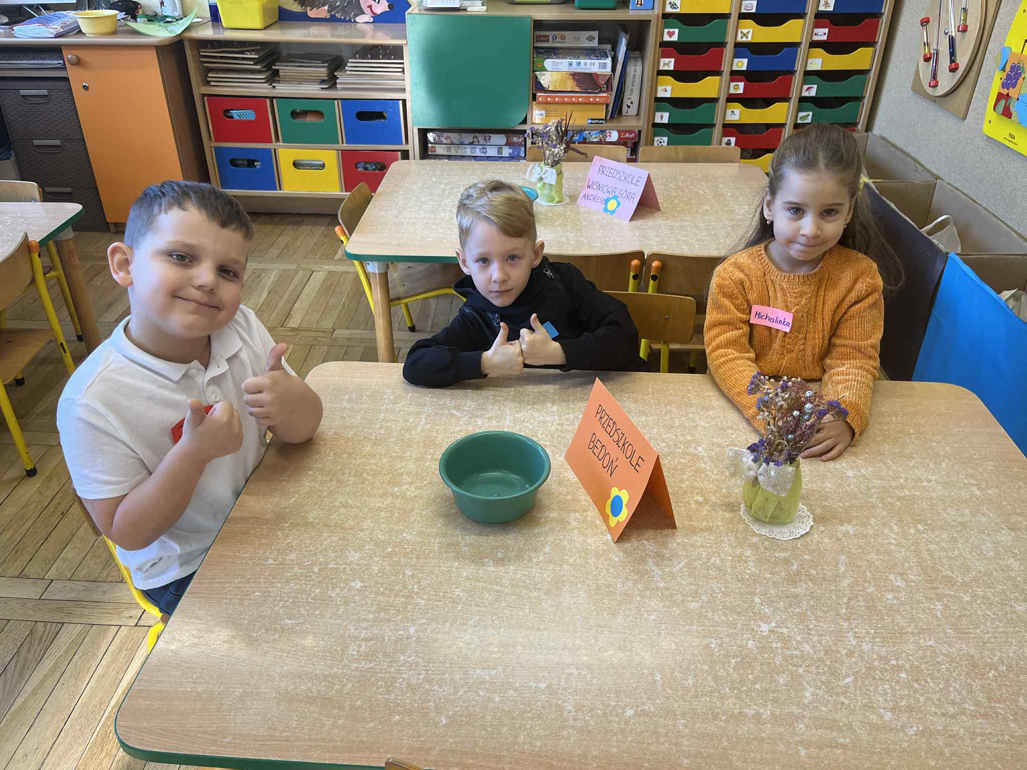 Przedszkolaki z grupy Krasnoludki wzięły udział w XIV edycji Konkursu Wiedzy Przyrodniczo–Ekologicznej, którego celem było rozwijanie świadomości ekologicznej oraz kształtowanie postaw przyjaznych środowisku. Pod hasłem „Mali przyjaciele przyrody” dzieci sprawdzały swoją wiedzę o świecie roślin i zwierząt, ochronie środowiska oraz codziennych działaniach proekologicznych. Wśród zadań konkursowych było min. rozwiązywanie zagadek i quizów przyrodniczych, rozpoznawanie roślin i zwierząt na ilustracjach, ćwiczenia praktyczne związane z segregacją odpadów, a także rozmowy o tym, jak każdy może być „przyjacielem przyrody” w codziennym życiu. Michalinka, Olek i Jurek z entuzjazmem podjęły wyzwanie, pokazując, że są prawdziwymi „małymi przyjaciółmi przyrody”. Gratulujemy!