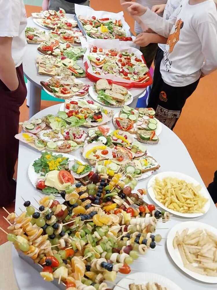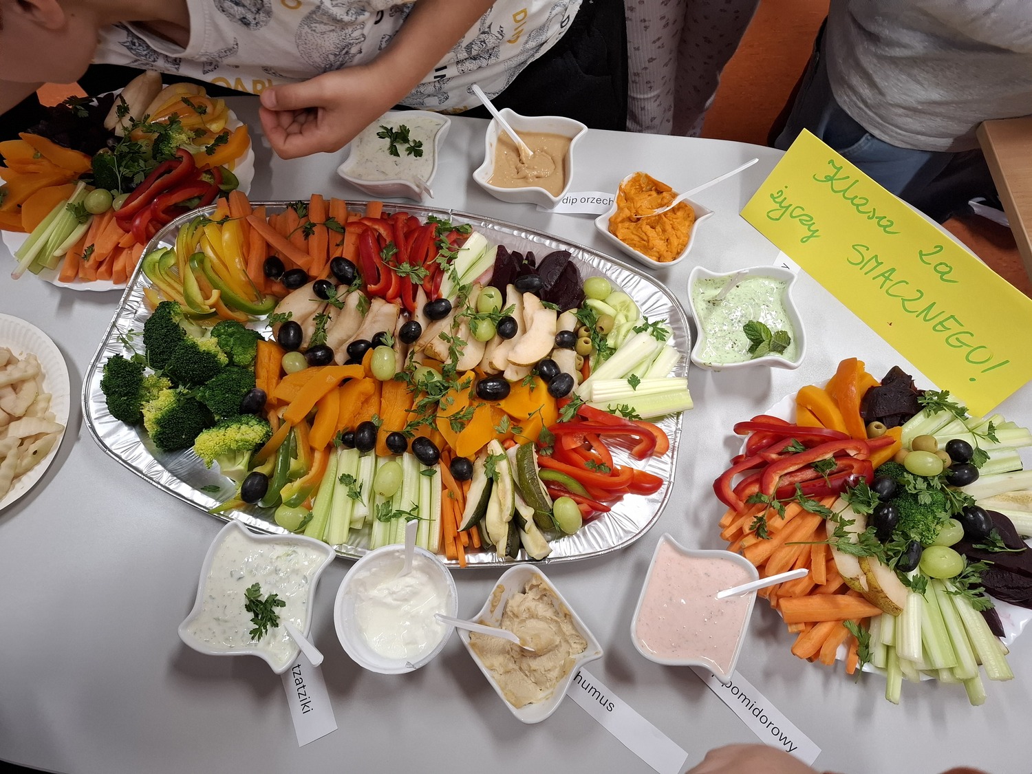 - warzywa i owoce podawane z lekkimi dipami – uczniowie próbowali nowych smaków i przekonywali się, że mogą być świetną przekąską;