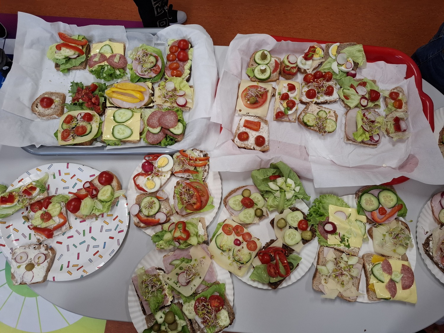 - zdrowe kanapki – z kolorowymi warzywami i pełnoziarnistym pieczywem, dbając o estetykę i różnorodność składników;