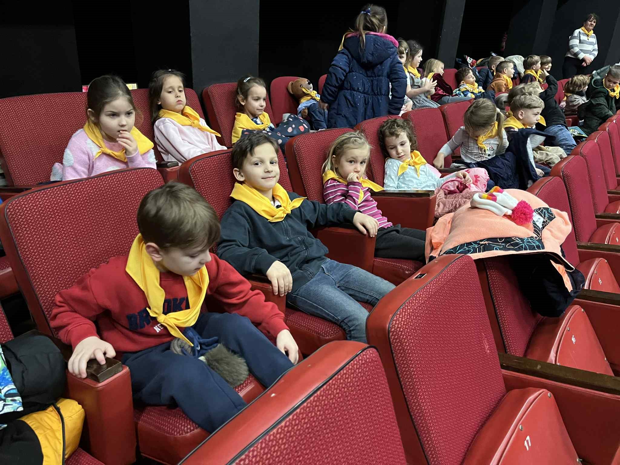 Przedstawienie pełne było ruchu, muzyki i humoru, a aktorzy w niezwykle pomysłowy sposób pokazali historię ciężkiej, sapiącej lokomotywy i jej niezwykłego ładunku. Dzieci z ogromnym zainteresowaniem śledziły akcję, reagowały na sceniczne wydarzenia i aktywnie uczestniczyły w proponowanych zabawach teatralnych. Wyjazd był również okazją do rozwijania wrażliwości artystycznej, poznania zasad kulturalnego zachowania w teatrze, wspólnego przeżywania emocji i budowania pozytywnych doświadczeń. Po spektaklu dzieci chętnie dzieliły się swoimi wrażeniami – wielu przedszkolaków podkreślało, że najbardziej podobały im się dynamiczne sceny z wagonami oraz zabawne interpretacje bohaterów. To był dzień pełen radości, inspiracji i teatralnych wrażeń.