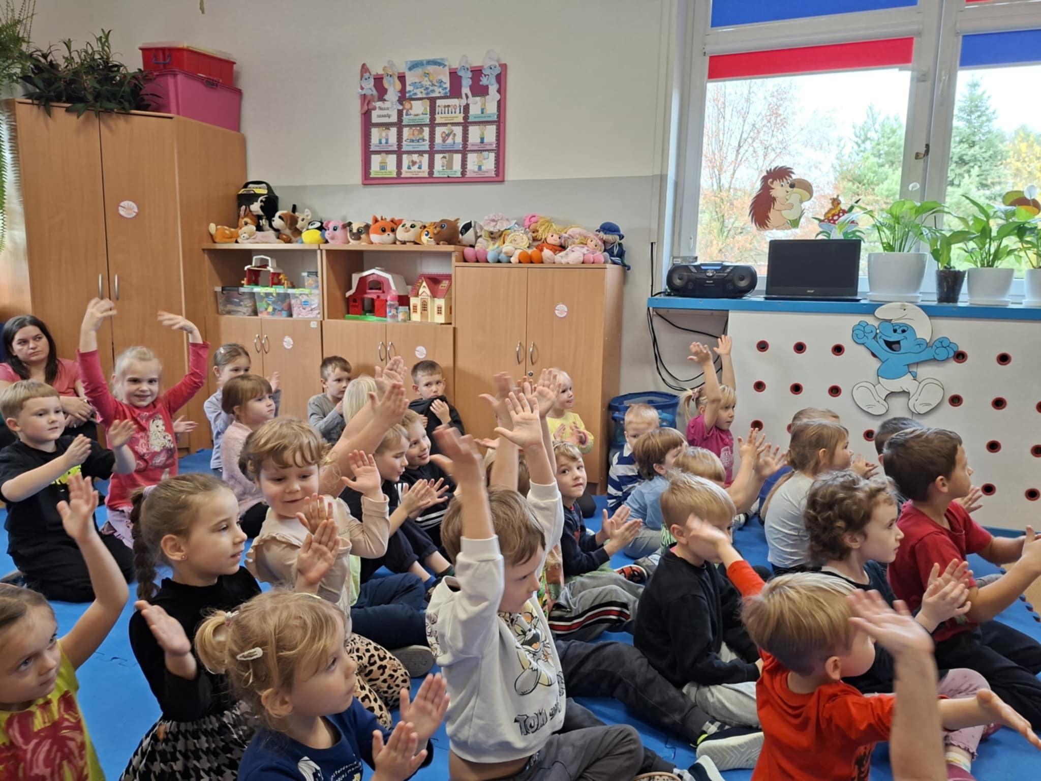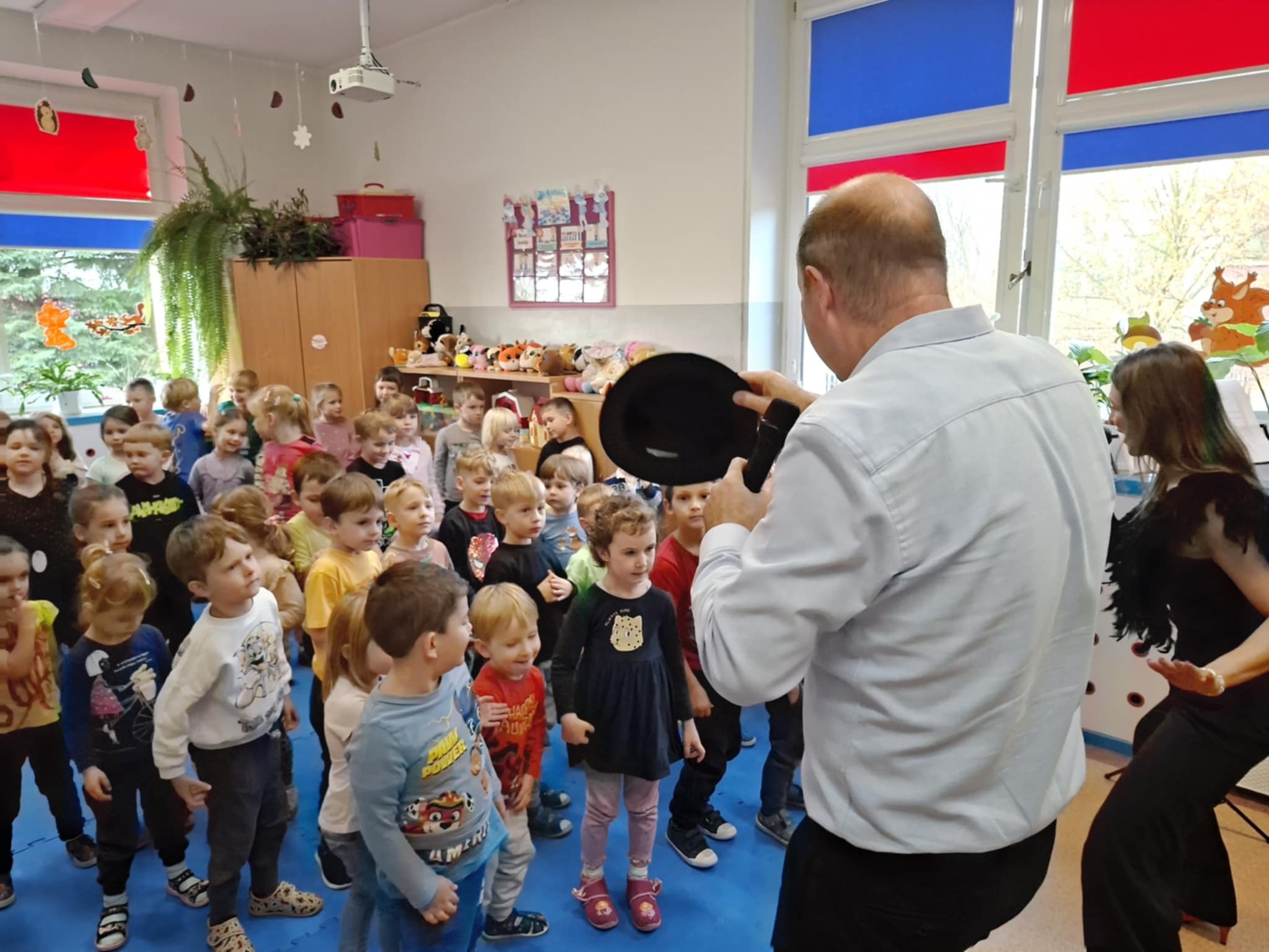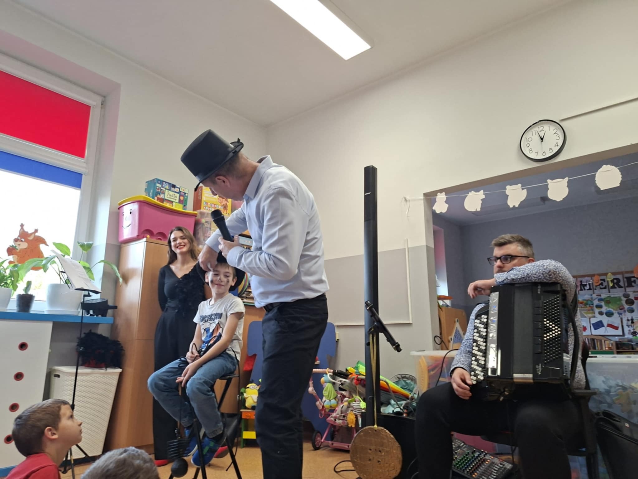 W ramach cyklu spotkań z „Filharmonią na kółkach” dzieci uczestniczyły w wyjątkowym koncercie pod hasłem „Musicalowy zawrót głowy”. Podczas występu przedszkolaki miały okazję wysłuchać i wspólnie zaśpiewać znane utwory musicalowe, a także aktywnie włączyć się w zabawy rytmiczne i ruchowe. Koncert rozwijał wrażliwość muzyczną i emocjonalną dzieci. Był okazją do integracji grup oraz wspólnego przeżywania sztuki. Dziękujemy artystom Filharmonii na kółkach za niezapomniane muzyczne przeżyci