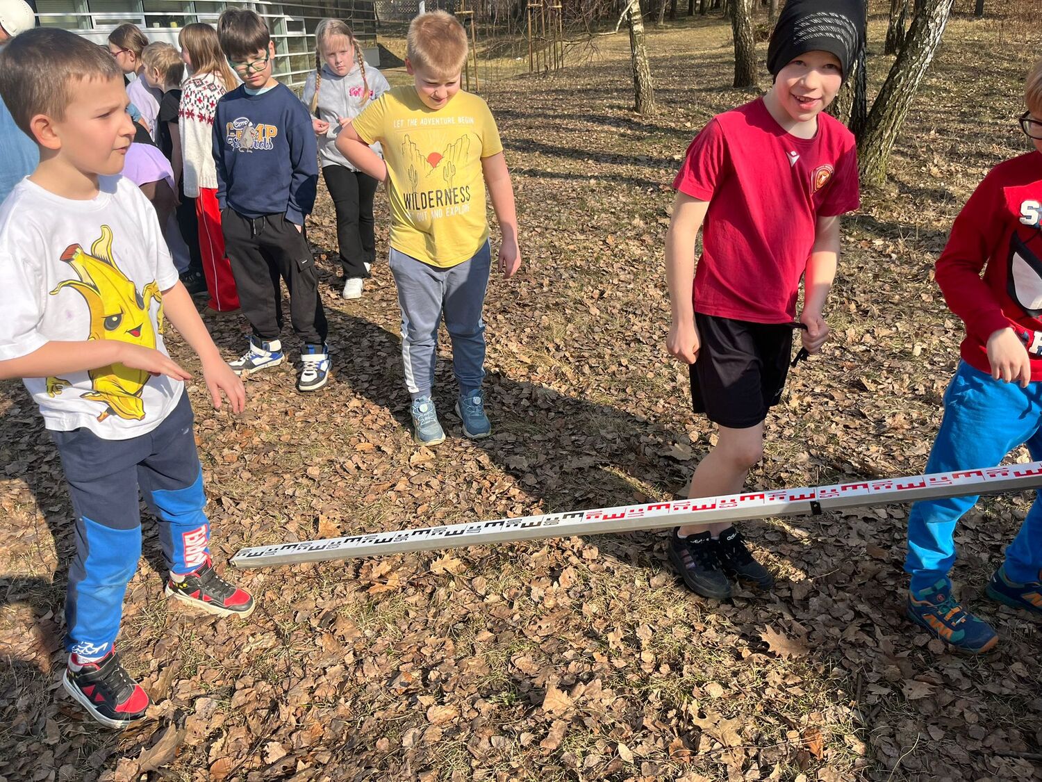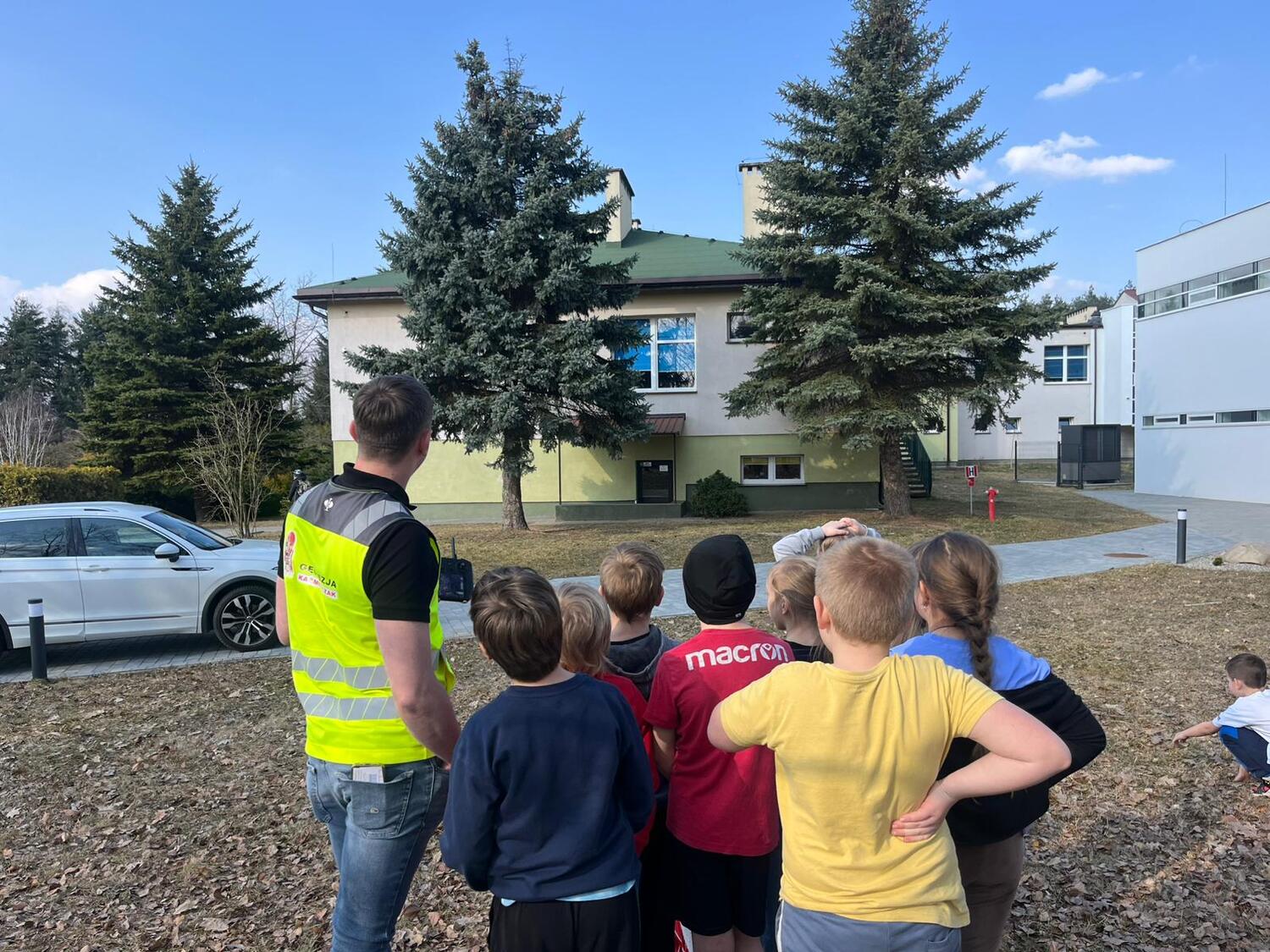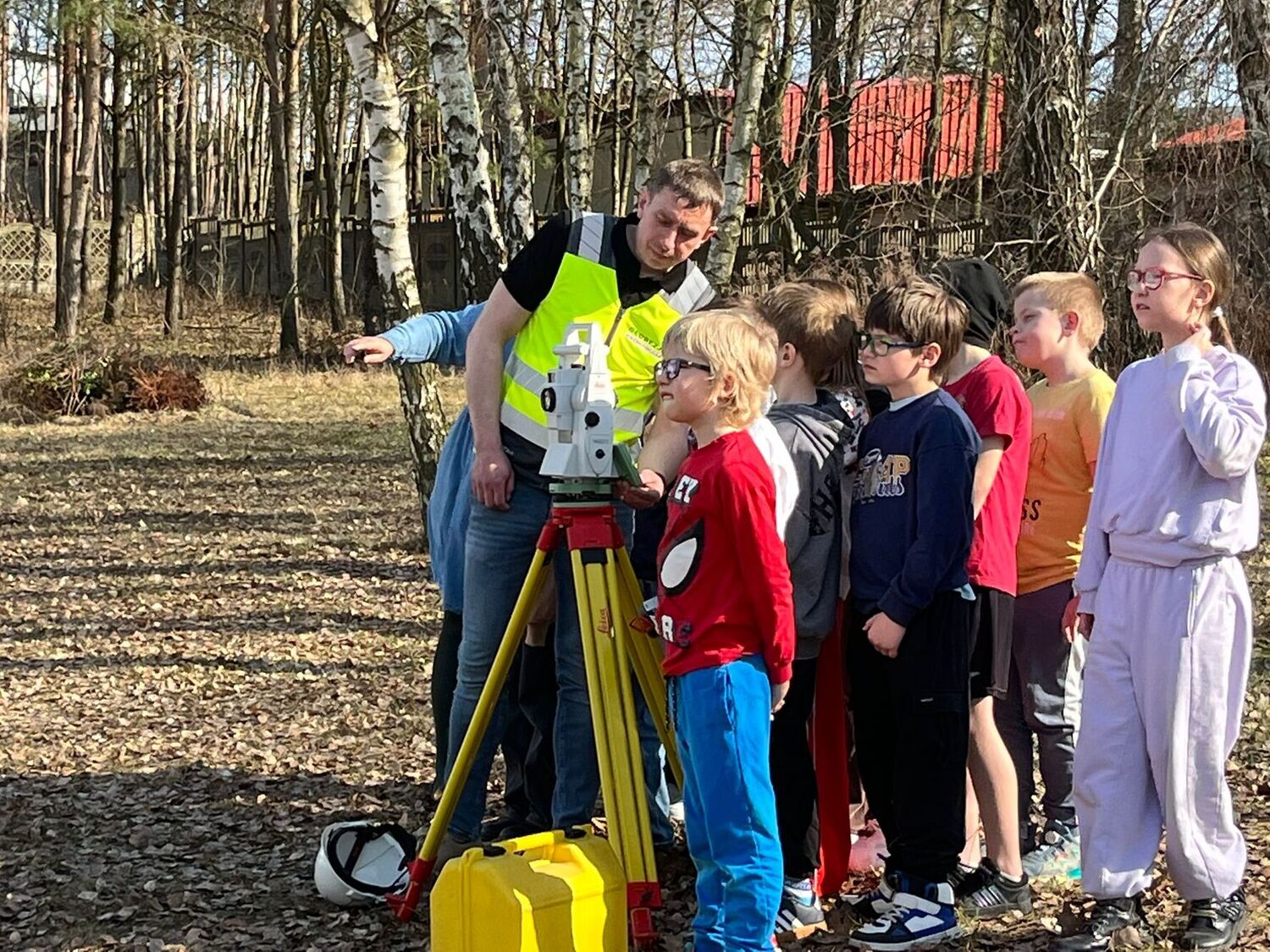 W piątek 13.03. klasę 2b odwiedził Pan Marcin Kaźmierczak, tata Tosi i Frania. W ramach zajęć z doradztwa zawodowego uczniowie poznali zawód geodety, dowiedzieli się co zrobić, aby wykonywać ten zawód, na czym polega codzienna praca geodety. Po części teoretycznej dzieci poznały sprzęty wykorzystywane w przeszłości przez geodetów i obecnie. Wspólnie z gościem wykonały pomiary, sprawdziły czy miara geodezyjna jest tak samo precyzyjna, jak nowoczesny sprzęt laserowy. Na zakończenie spotkania zostało wykonane pamiątkowe zdjęcie prosto z drona, obecnie wykorzystywanego coraz częściej w pracy geodetów.
