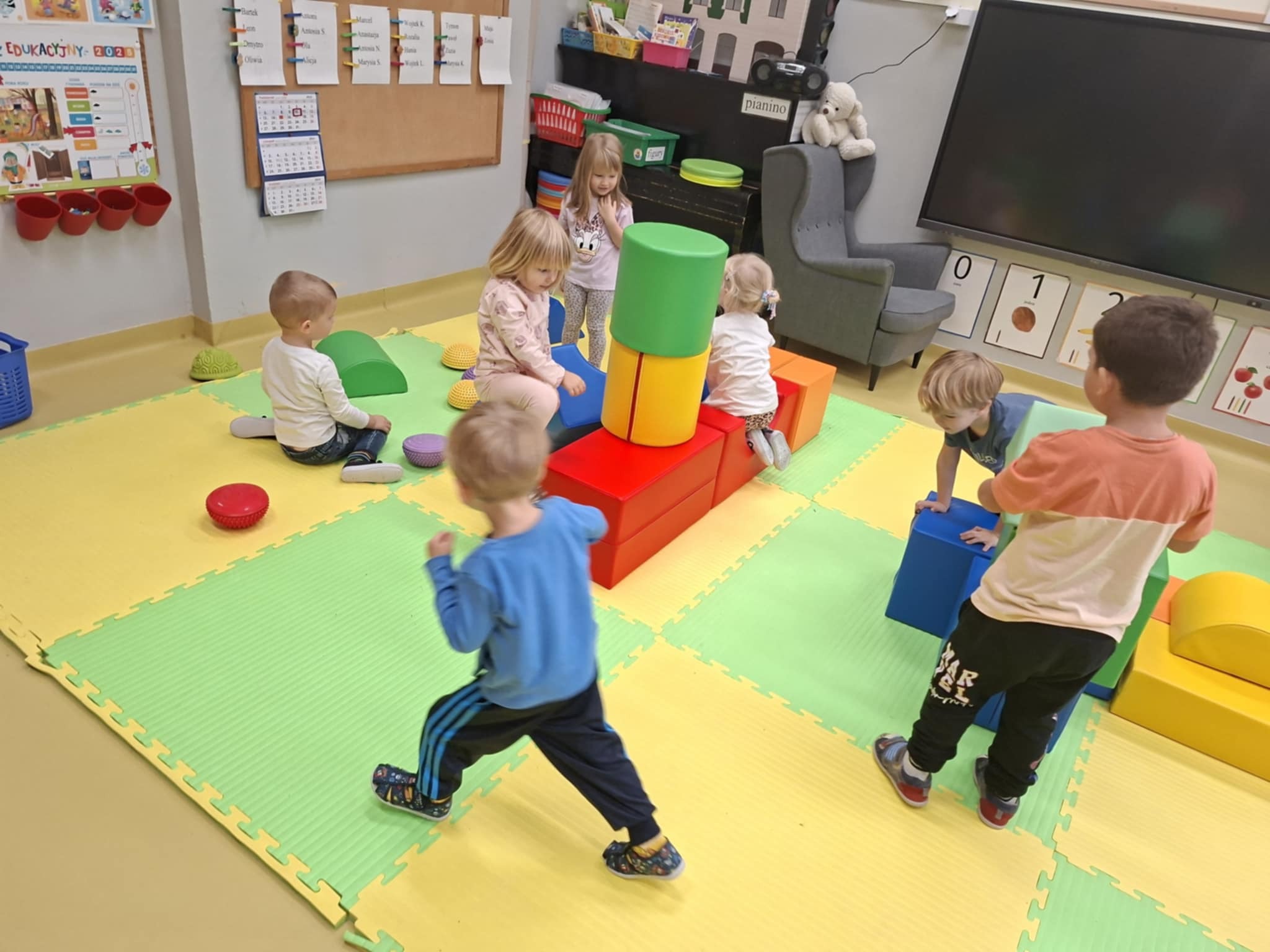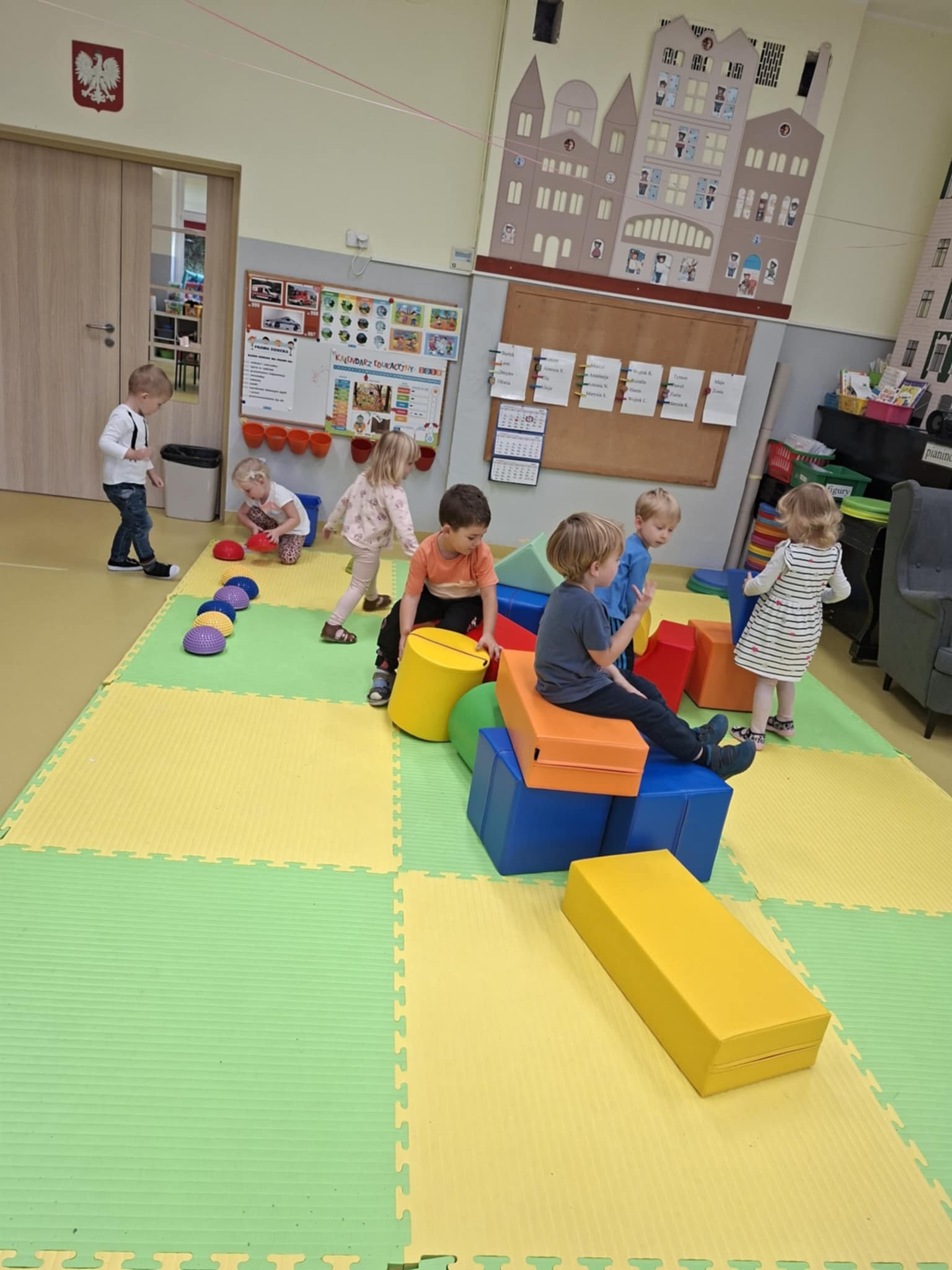 "Sportowe piątki" to nie tylko ćwiczenia – to także okazja do budowania więzi, rozwijania kompetencji społecznych i emocjonalnych oraz wzmacniania poczucia własnej wartości. Co robimy podczas "Sportowych piątków"? - ćwiczenia gimnastyczne i zabawy ruchowe z wykorzystaniem przyborów (piłki, szarfy, woreczki); "Taniec i rytmika" – rozgrzewka przy muzyce, układy taneczne i zabawy integracyjne; "Mini zawody sportowe" – tory przeszkód, rzuty do celu, biegi z zadaniami; ćwiczenia oddechowe i relaksacyjne – nauka świadomego odpoczynku po wysiłku. Dzieci chętnie uczestniczą w zajęciach, a ich entuzjazm pokazuje, że ruch to naprawdę zdrowie!