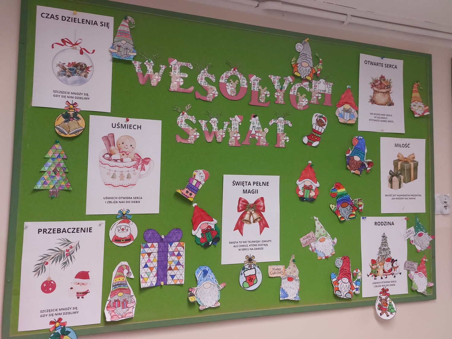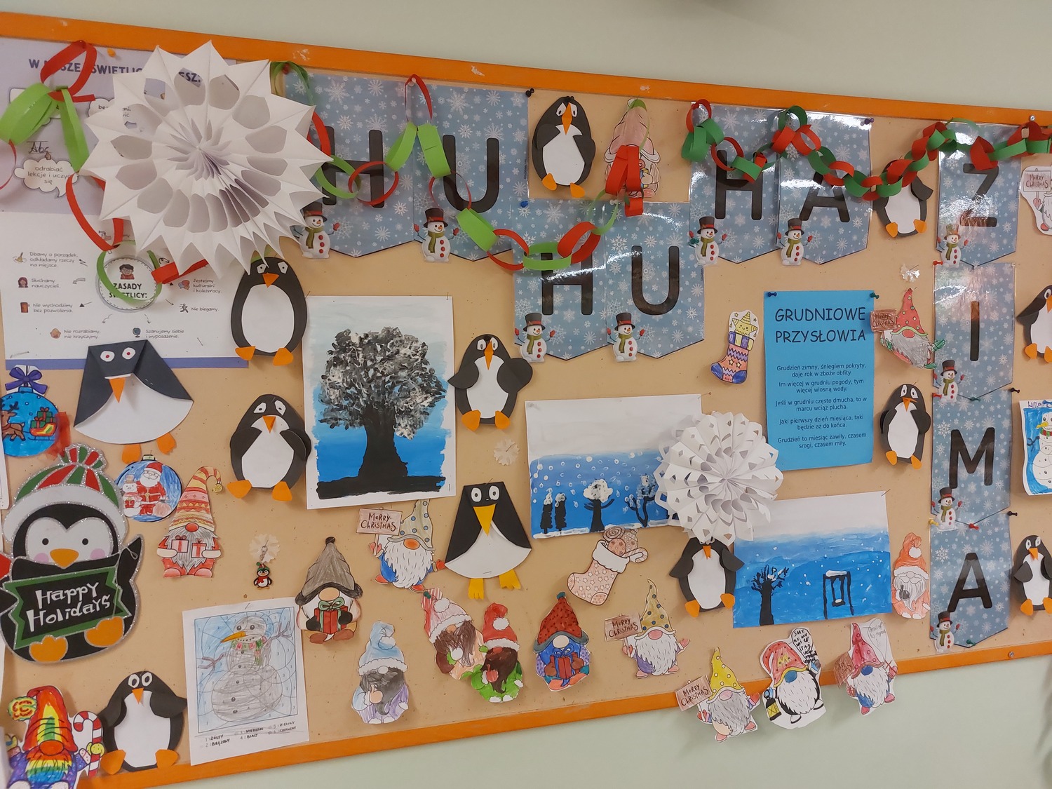 W świetlicy szkolnej dzieci z dużym zaangażowaniem wykonywały świąteczne prace plastyczne. Powstały kolorowe choinki, bombki, skrzaty oraz ozdoby, które wprowadziły radosny, świąteczny nastrój. Zajęcia rozwijały kreatywność, zdolności manualne oraz pozwoliły dzieciom miło spędzić czas w atmosferze zbliżających się świąt. A wszystkie prace dzieci można podziwiać na tablicach w sali świetlicowej i korytarzu w szatni.