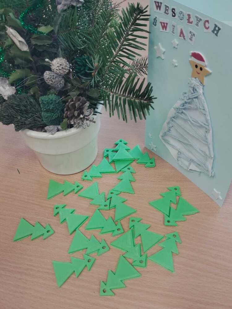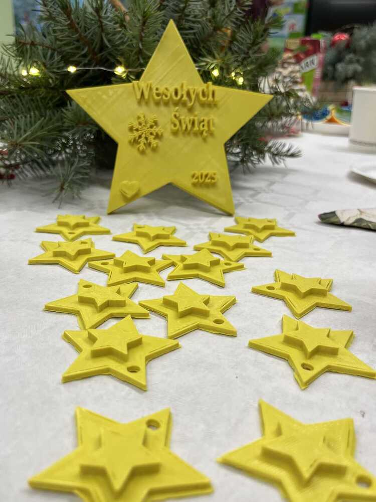 Drukarka 3D ciężko pracowała w tym roku przed świętami. Dla uczniów klasy 2a zostały wydrukowane choineczki, a dla klasy 2b gwiazdki. Powstały również piękne śnieżynki, duża gwiazda z napisem Wesołych świąt i foremka do pierniczków w kształcie skarpety.