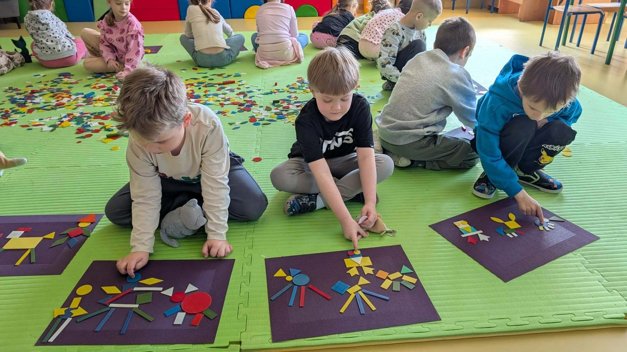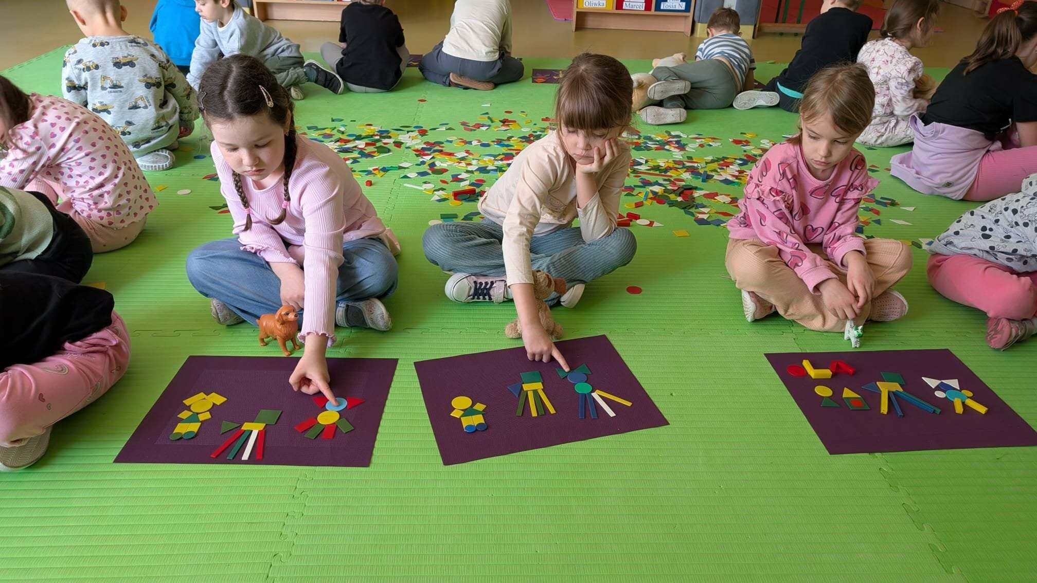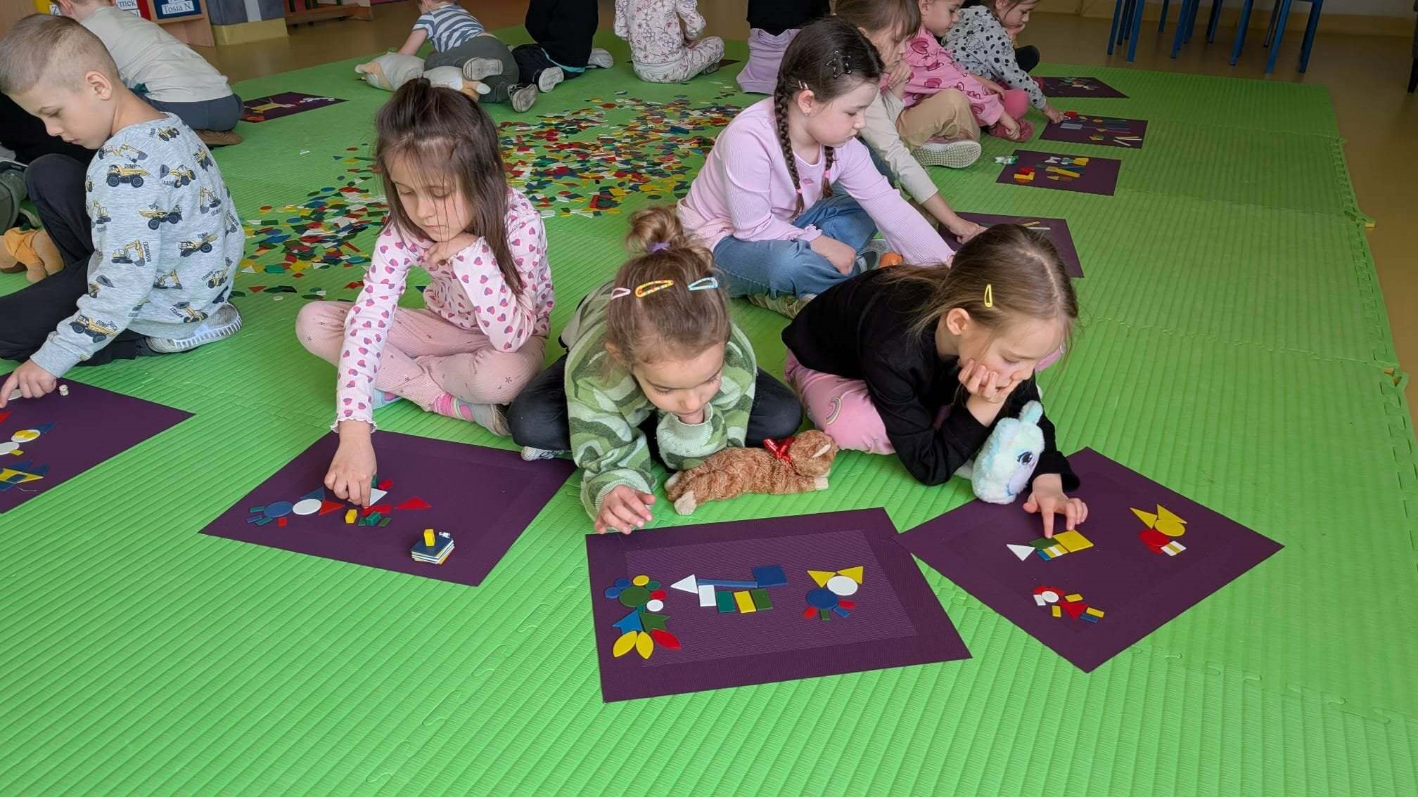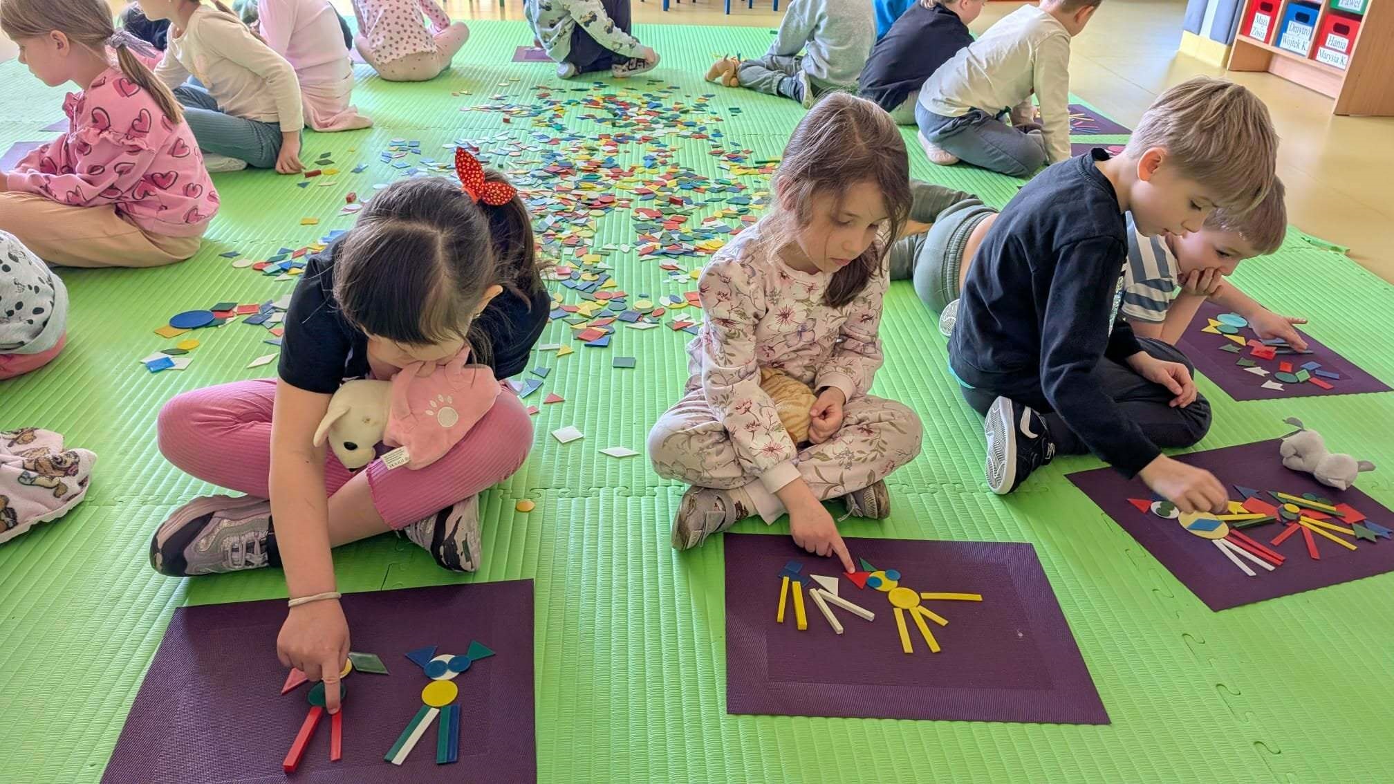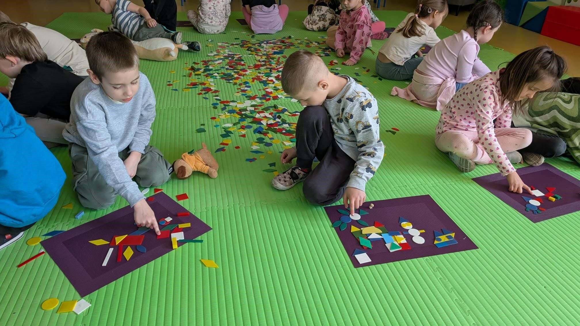 W krainie Misiaczków kolorowe figury ożyły, zamieniając się w zaczarowane stworki, zwierzątka i magiczne obrazki. Dzieci z radością tworzyły własne małe dzieła sztuki, odkrywając, że w świecie wyobraźni każda forma może stać się czym tylko zechce:).