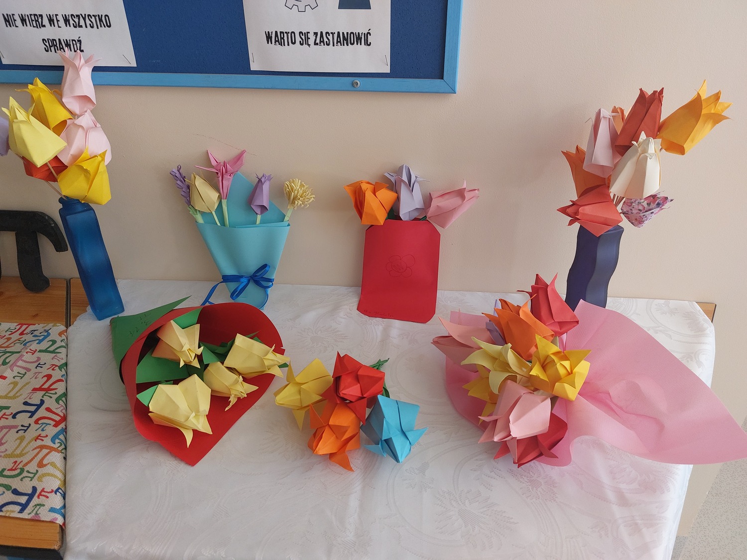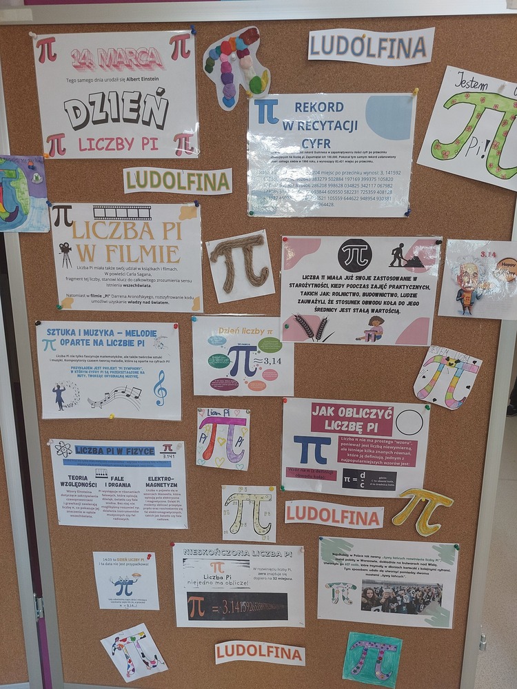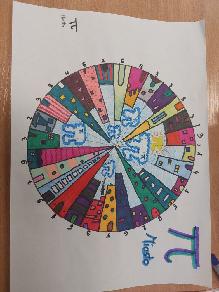 Na lekcjach tworzyli prace związane z Liczbą Pi, tak powstały Pi miasta. Zorganizowaliśmy również kiermasz matematycznych wypieków. Z wystawy na korytarzu można było dowiedzieć się wielu ciekawostek o ludolfinie. Chętni uczniowie mogli wziąć udział w konkursie na zapamiętanie jak największej liczby rozwinięcia dziesiętnego liczby Pi albo przygotować bukiet kwiatów metodą Origami 3D.