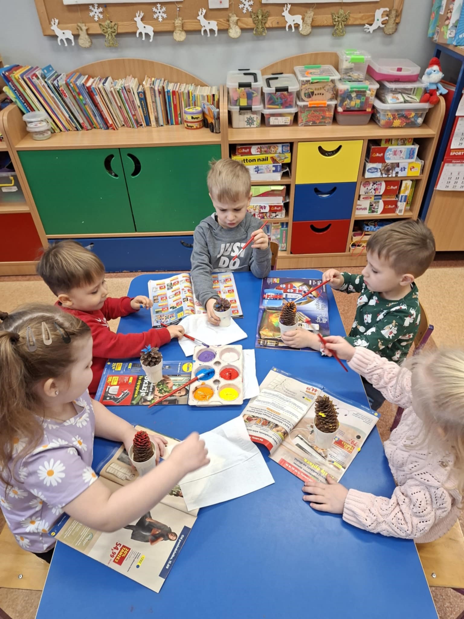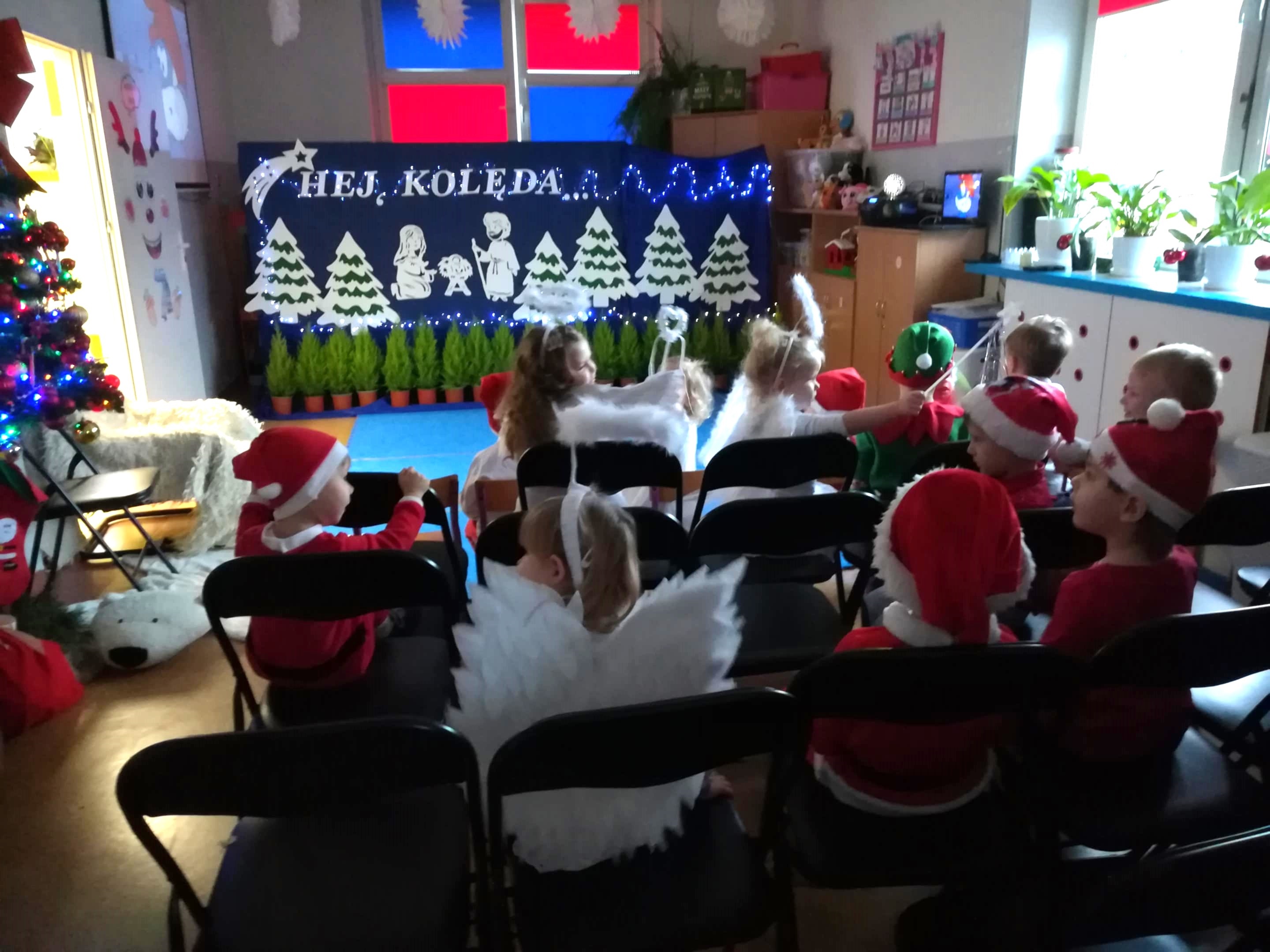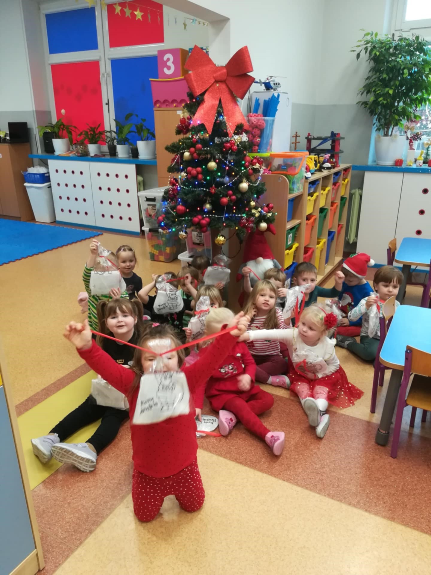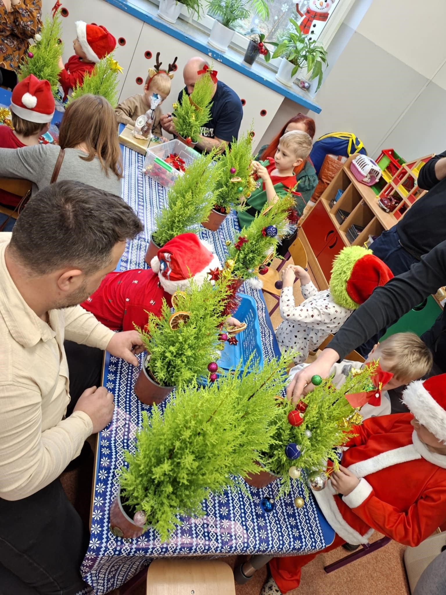 W ostatnich dniach razem z dziećmi w przedszkolu ubieraliśmy choinkę, poznawaliśmy tradycje bożonarodzeniowe, śpiewaliśmy kolędy i zimowe piosenki, dekorowaliśmy pierniczki, przygotowywaliśmy upominki dla rodziców i kartki świąteczne dla seniorów z DPS w Wiśniowej Górze. Nie zabrakło także rozmów o tym, czym są święta, co to znaczy być dobrym dla innych i jak możemy okazywać sobie życzliwość każdego dnia. Dzieci z niecierpliwością czekały na spotkanie z Mikołajem, z rodzicami podczas występów świątecznych i warsztatów bożonarodzeniowych. W powietrzu czuć było magię zbliżających się Świąt Bożego Narodzenia.