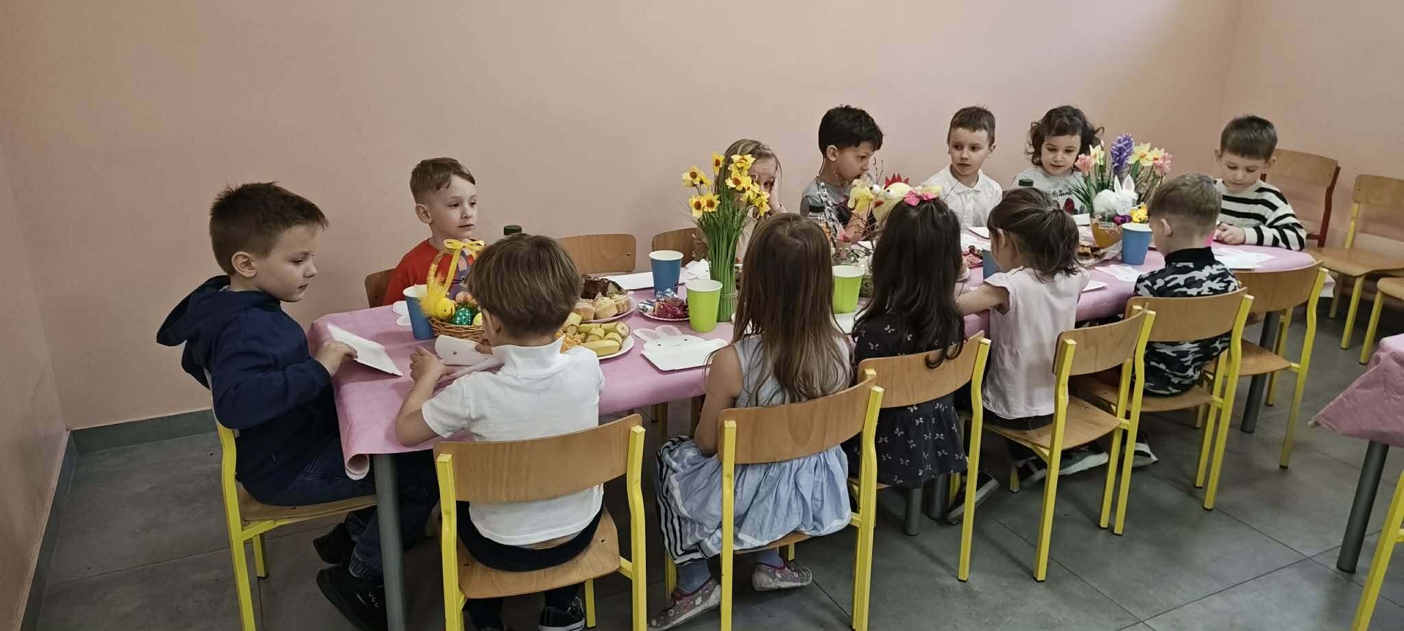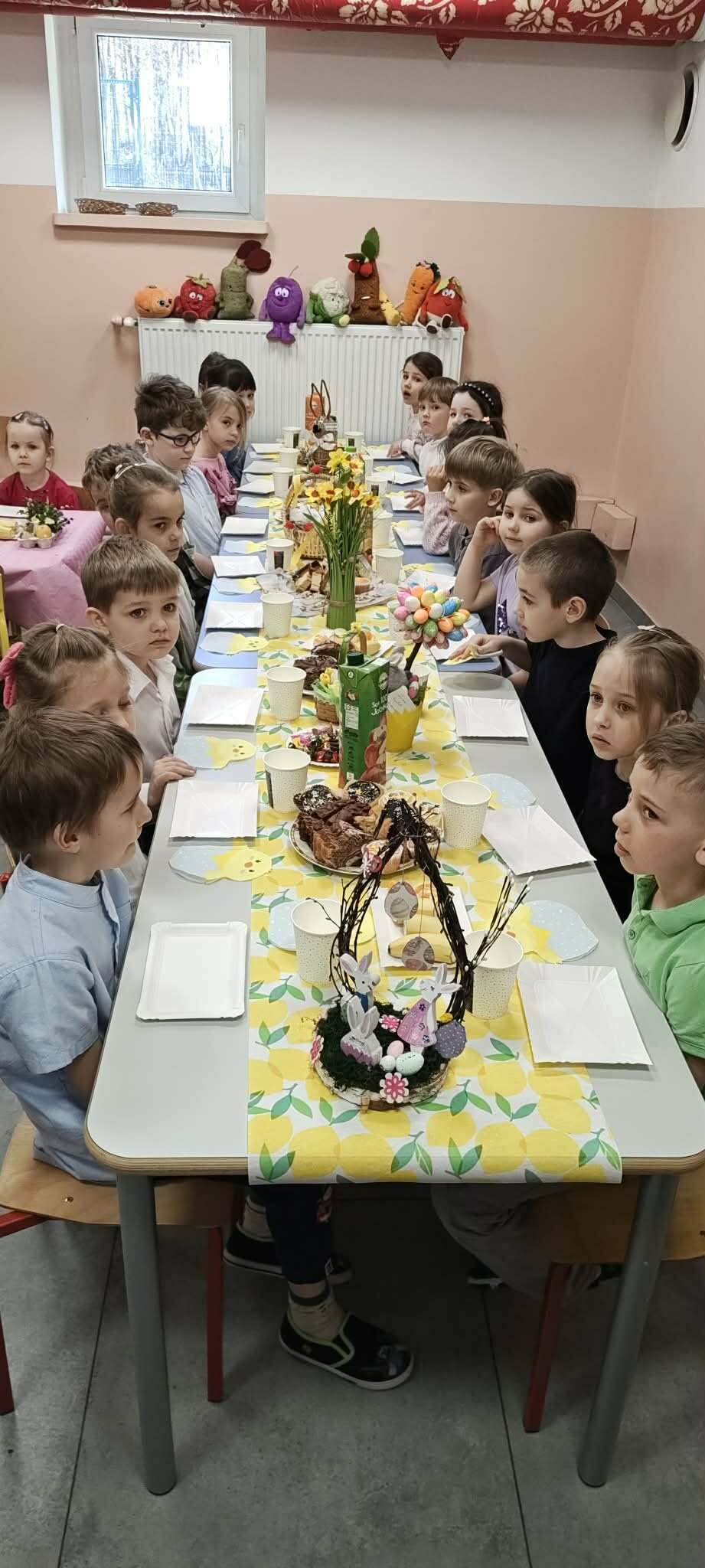 Wielkanocne śniadanie w naszym przedszkolu stało się chwilą, w której codzienność delikatnie ustąpiła miejsca temu, co odświętne i pełne radości. Dzieci zasiadły przy stołach jak przy wspólnym ogrodzie — pełnym barw, kwiatów i małych znaków odradzającej się natury. W ciepłych rozmowach, w dzieleniu się posiłkiem, w uważnych spojrzeniach i drobnych gestach pojawiło się to, co najważniejsze: poczucie wspólnoty. Jakby każdy talerzyk, każdy kwiatek i każda pisanka były małym symbolem nowego początku. To śniadanie nie było tylko posiłkiem — było wiosennym światłem, które rozgościło się między dziećmi, przynosząc spokój i cichą obietnicę, że dobro rośnie tam, gdzie jesteśmy razem. Wesołych Świąt Wielkanocnych!